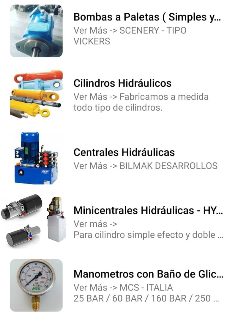ndros hidraulicos - Accesorios para centrales - Accesorios para tubos y mangueras - Acumuladores de presión